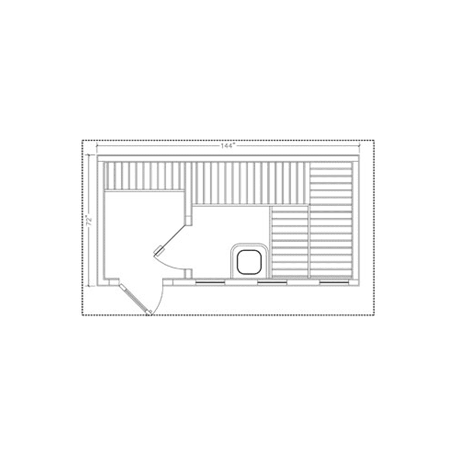 Customizable 5’x7′ outdoor sauna with 3 benches, with attached changing room. The options are almost unlimited — innovative use of glass windows and doors, unique bench configurations, and more. With a custom Euro Outdoor sauna, you can create the perfect sauna to fit your backyard living dreams.